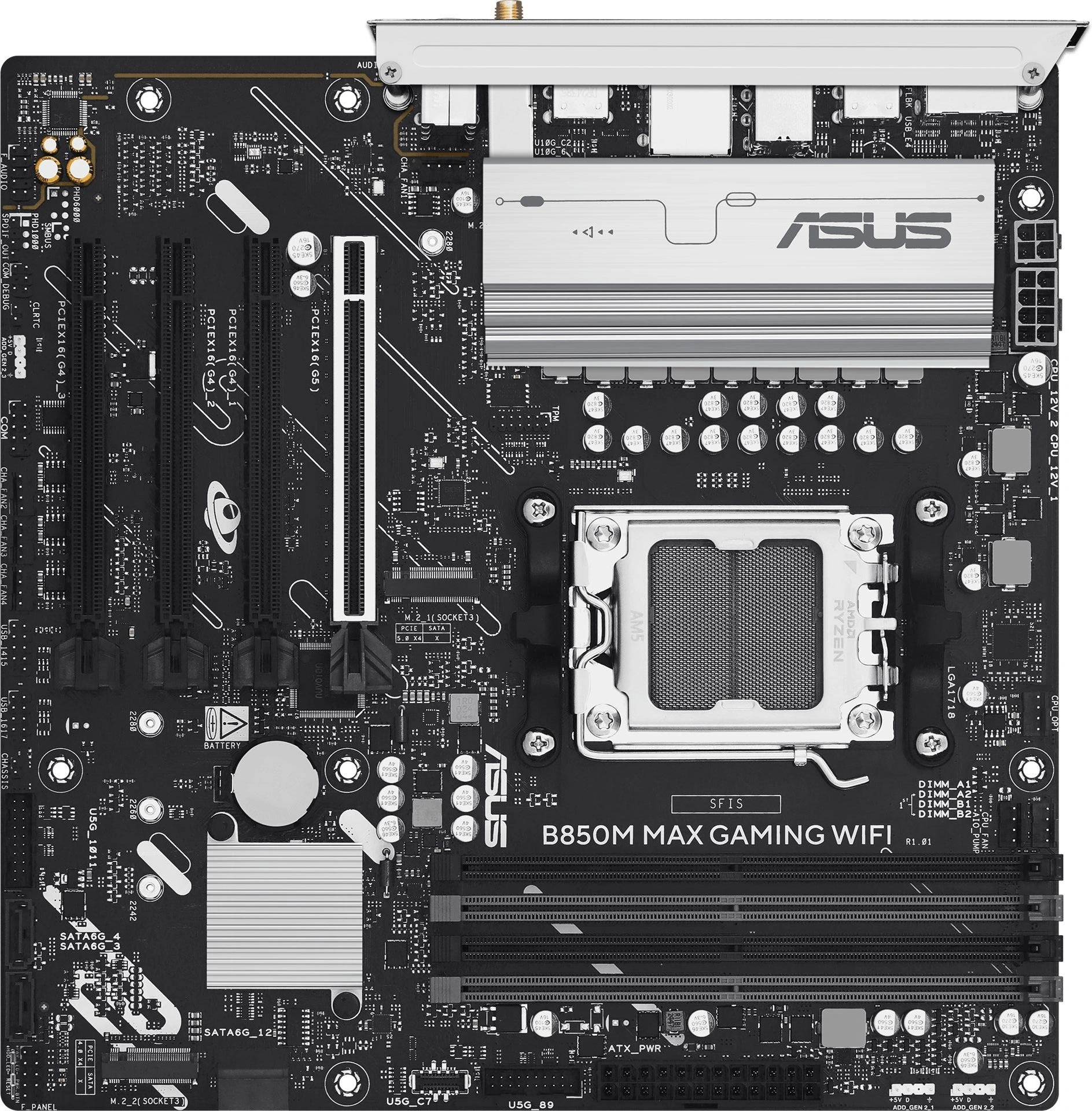 Материнская плата Asus B850M MAX GAMING WIFI SocketAM5 AMD B850 4xDDR5 mATX AC`97 8ch(7.1) GbLAN RAID+HDMI+DP