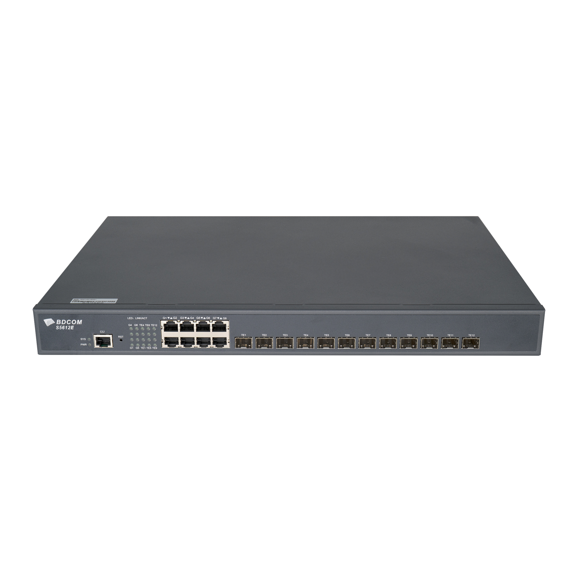 Управляемый коммутатор уровня 3 BDCOM S5612E-2AC, 8x 10/100/1000Base-T, 12x 1/10GE SFP+, 2 встроенных блока питания ~220V AC